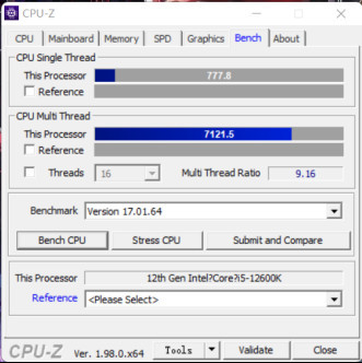 CPU-Z是另一个众所周知的基准测试程序。添加单独引用不同处理器命令集来运行的不同项目 。最新版本98用于测试。考虑到下一代核金湾结构的两位数 IPC改进 超过第11代Cypress Cove的设计,因此,酷的i 5 -12 -600K在这个测试中确实令人钦佩。