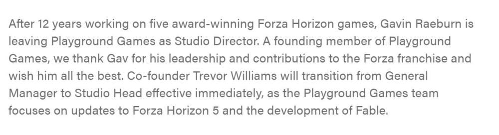 根据 Windows Central 的报道,Playground 工作室(《极限竞速 地平线》系列)联合创始人& 主管 Gavin Raeburn 已离开工作室,暂不知晓今后的去处。