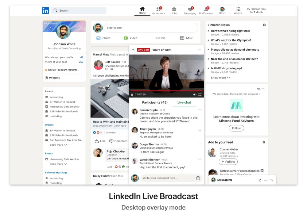 这项服务可直接从LinkedIn的网站上获取,不需要任何额外的软件来主持、记录或执行活动。