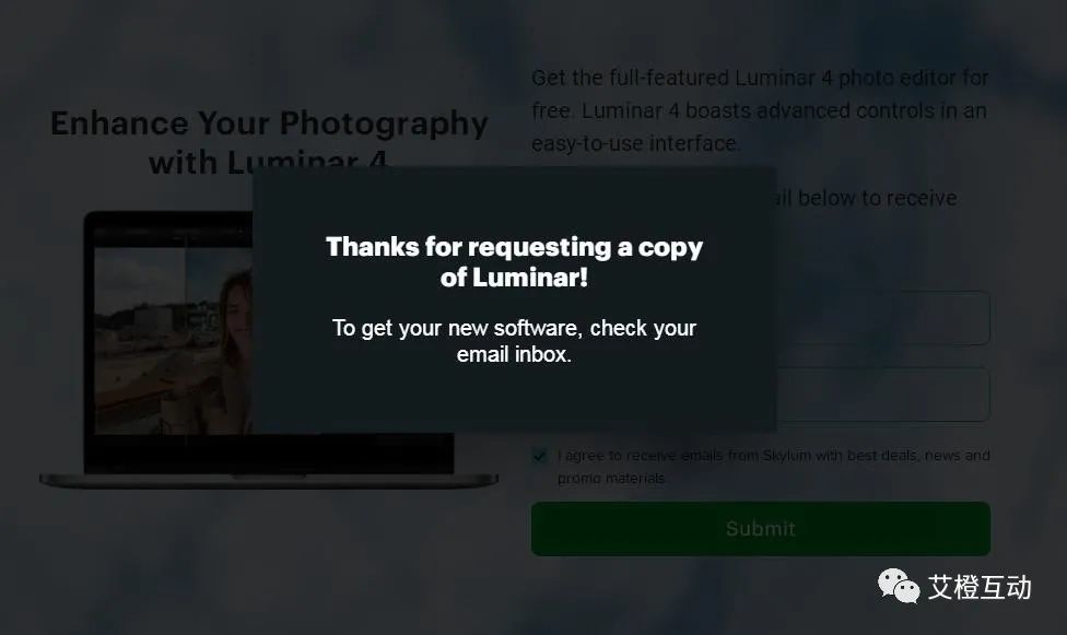 如果一个未使用,或者如果使用在Luminar没有注册的邮箱,在进入邮箱中活动页面后,