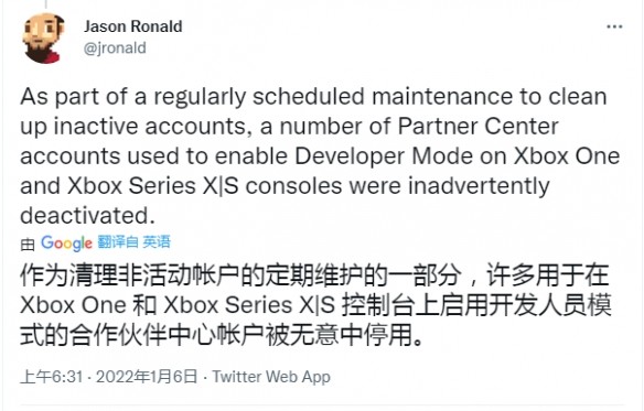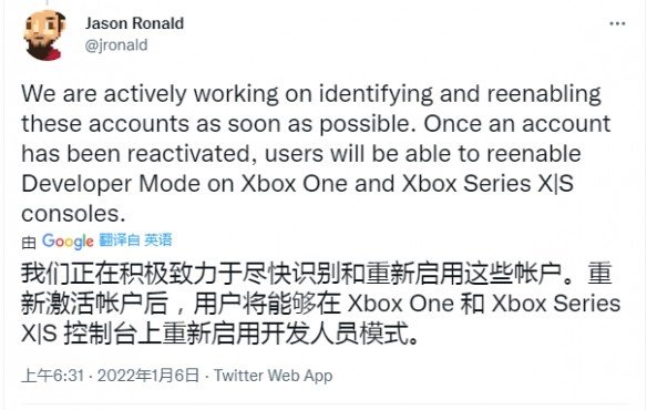 微软确认不会禁用Xbox开发模式 一些帐户属于意外停用