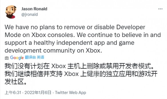 微软的Jason Ronald肯定Xbox“无意”删除或禁用Xbox赌博控制台的开发者模式。