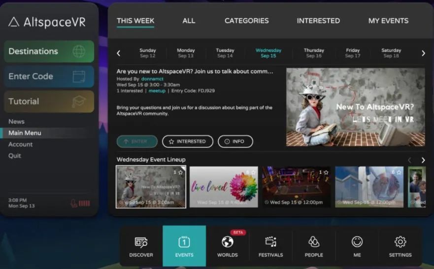 AltspaceVR提供各种各样的活动,包括现场音乐会、会议、喜剧表演、节日、科学讲座等,都列入议程。
