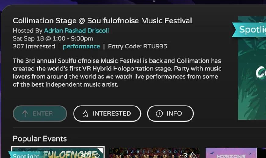 AltspaceVR 中的每个活动和世界生成一个六个字符的字母数字代码。通过添加该代码,您可以将代码从侧边栏屏幕直接发送到活动或世界。该代码可以在对每个活动或世界的描述中找到。