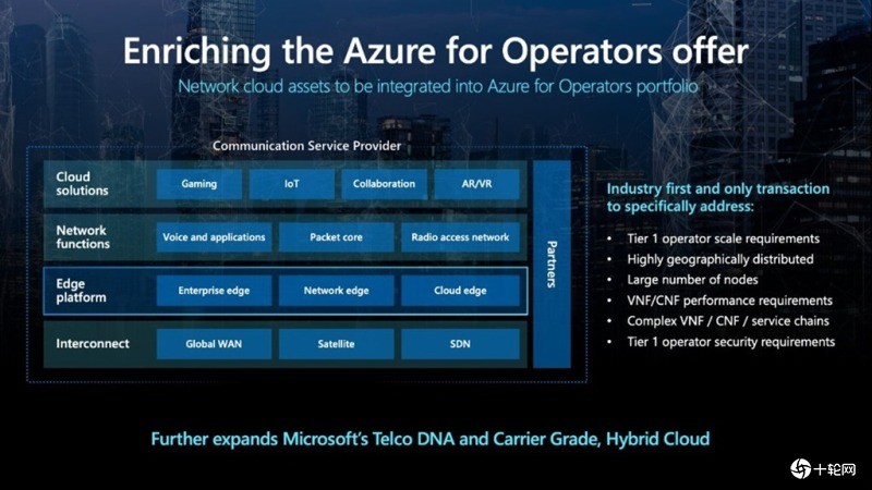微软指出双方收购案是移动核心网络的集成,而非只是营销面的合作。Azure for Operators混合云技术现在已能支持AT&T网络上15家不同厂商,提供超过60个虚拟化网络功能(virtual network function,VNF)及云计算原生网络功能(cloud-native network function,CNF)虚拟网络。