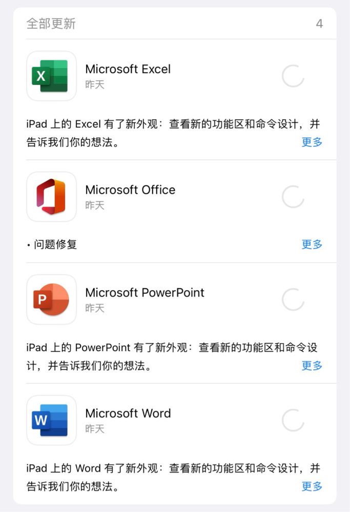 微软 Office 三件套 iOS 版近期迎来了 2.57 版本更新,根据更新日志显示,iPad 上的 Excel、PowerPoint、Word 有了新外观:查看新的功能区和命令设计,并告诉我们你的想法。