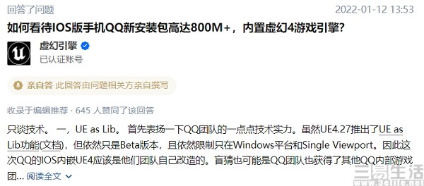 日前,虚幻引擎官方对此也做出了回应。据其表示,首先UE4.27推出了UE as Lib功能,但依然只是Beta版本,且依然限制只在Windows平台和Single Viewport,因此QQ的iOS内嵌UE4为团队自行改造,也可能是QQ团队获得了其他QQ内部游戏团队的技术帮助。