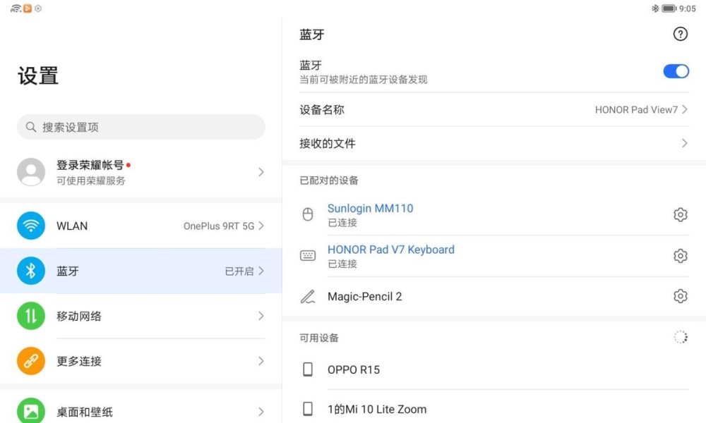 配对安装,可以是手机或者平板,iPad也比较推荐。我一般是用荣耀平板的。大屏、高分辨率,性能也不错。打开鼠标开关然后选择搜索到的设备:Sunlogin MM110,选择连接、配对就行了。