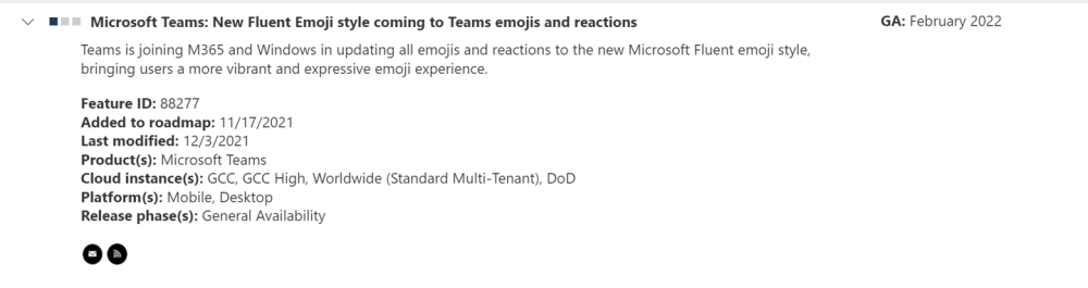 微软一直在努力将新的基于流畅设计的表情符号系统添加到 Teams 软件中。该功能本应在 2021 年 11 月向 Teams 用户推出,但由于某些原因,微软不得不推迟推出。幸运的是,Teams 用户不必等那么久,因为 Microsoft 365 路线图页面显示,新的表情符号系统将在 2022 年 2 月向微软 Teams 用户提供。但微软未提供具体上线日期。