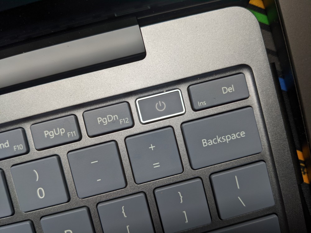 Surface Laptop 家族的键盘和触控板本身就值得信赖。Surface Laptop Go 上的键盘使用起来的手感要比 MacBook Pro 上面的 Magic Keyboard 键程长一些,因此在回弹的过程中更加舒服一些,不会那么直接。我反正是一上手就爱上了这个键盘。在敲键的时候,这款键盘的声音也完全算不上大,在可以接受的范围之内。在键盘的电源键上,集成了支持 Windows Hello 的指纹传感器,可以直接使用指纹登录电脑并且进行 Microsoft 账户的验证操作。