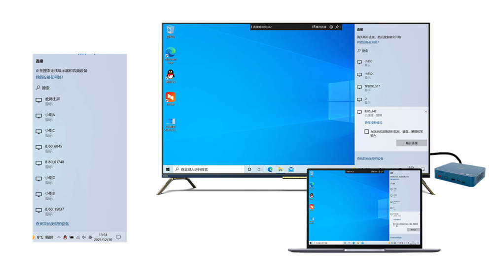 不过就我这几年的工作经验来看,目前,企业中绝大多数用户使用的还是以Windows电脑为主,下面我们就来看看Windows电脑是如何实现最为快捷的无线投屏需求的吧。对我们常用的笔记本电脑来说,尤其是以Win 10电脑为主,只需要按下Win+K就可以唤醒这样的一个无线投屏显示的设置,再找到我们需要投屏的主机,点击连接即可完成投屏操作。不过对于大屏幕反向控制电脑依旧也是可行的,但是我们要先给到允许权限哦,如此一来,后续办公也是格外方便的,要是会议室足够大的话,我们还可以通过Win+P来扩展到不同的显示屏幕,覆盖率自然也更大了。