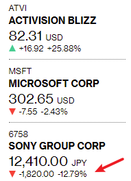 光是今天,索尼的股价就已经跌了将近 13% 了,是 2014 年以来的最大跌幅。