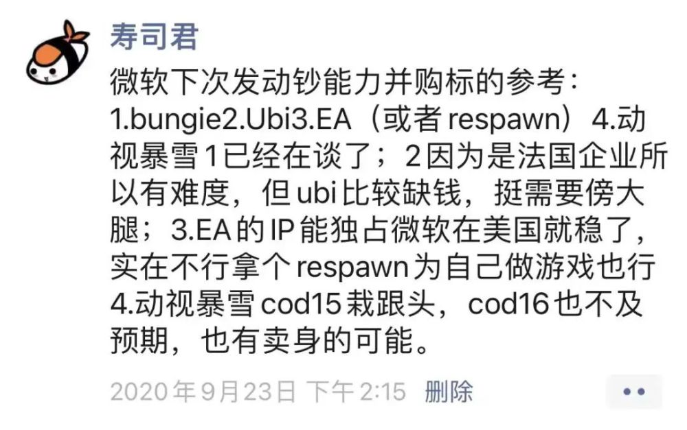 至于动视暴雪,主要是它连年不顺,容易让股东动了卖公司的心思,估值上也好压价。