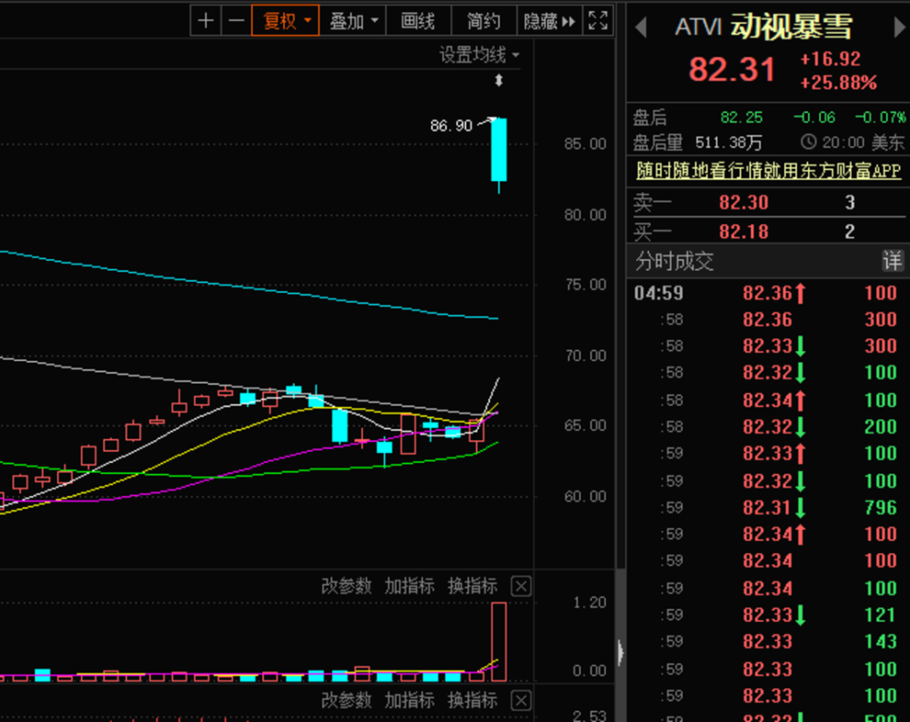 周二收盘,动视暴雪股价暴涨25.88%,报82.31美元,盘中一度涨超32%。微软股价周二收跌2.43%,报302.65美元。
