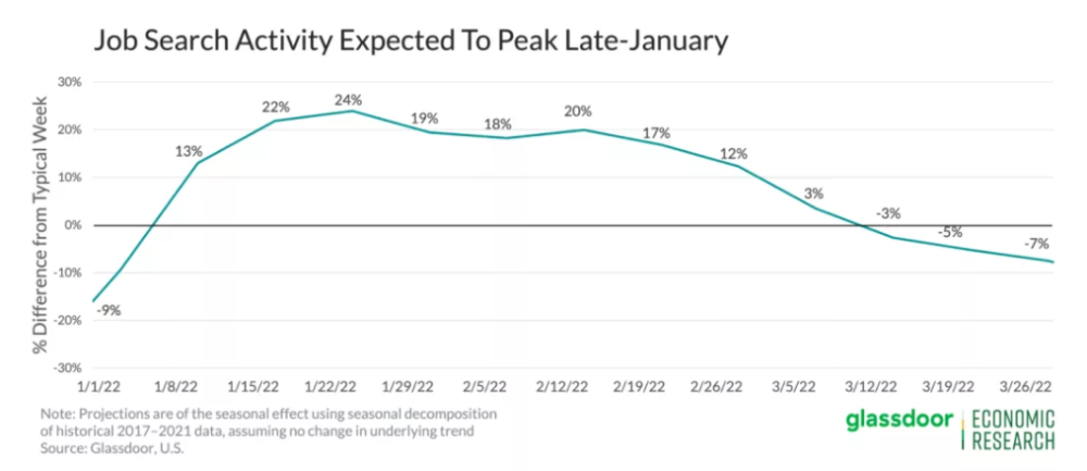 从历史上看,Glassdoor的求职活动从12月到1月平均增长28%,求职活动在假期前后逐渐减少,并在年初增加。招聘困难在整个假期持续存在,因此鼓励了更多雇主加入"福利战争"以吸引员工。