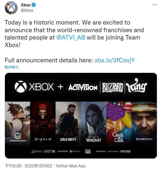 - 2022-01-21 微软收购动视暴雪!曾经的大饼或