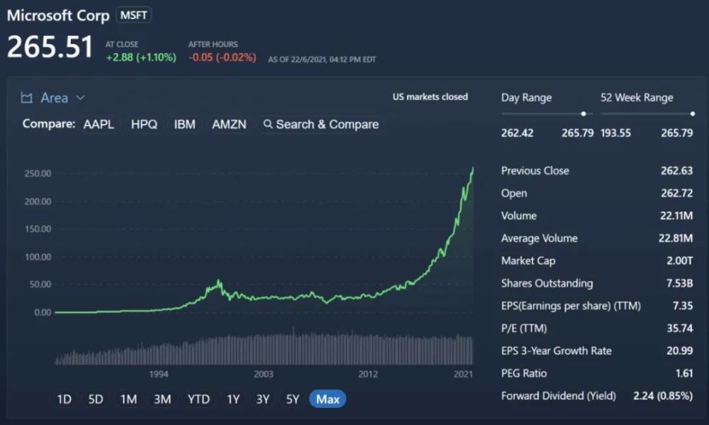直至2021年为止微软市值突破2万亿美元,是继苹果之后美国第二家市值突破2万亿美元的企业。