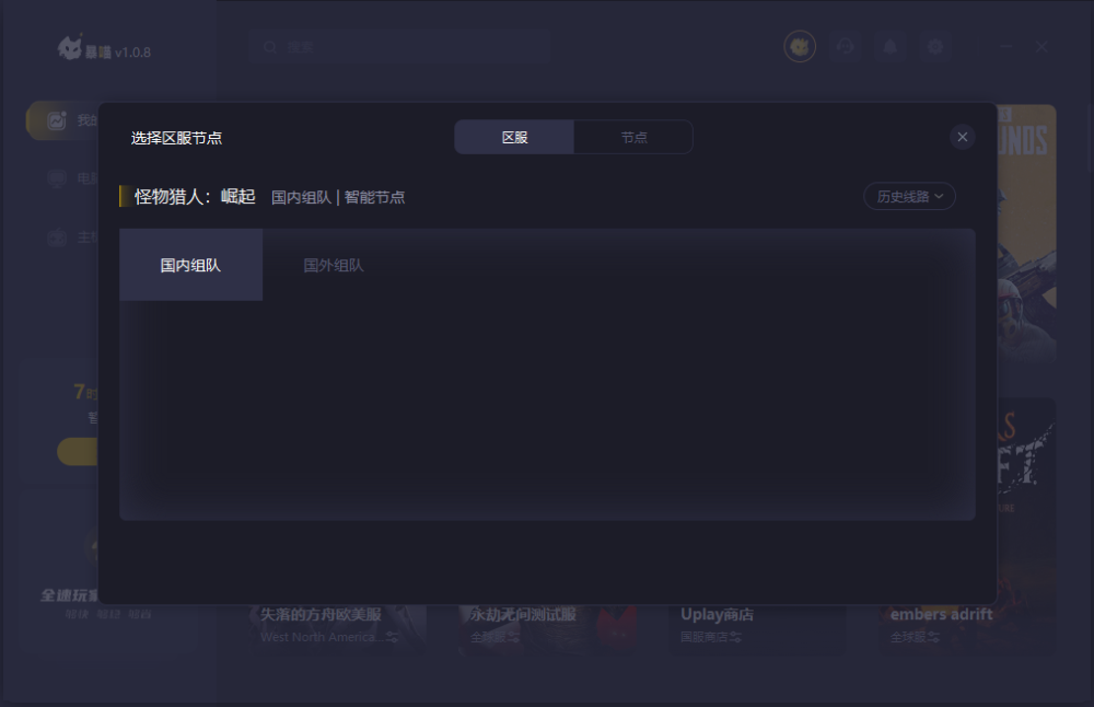 如果是网络不稳定无法登录游戏,无法联机组队,延迟高卡顿掉线的,可以使用加速器加速,比如暴喵加速器,可以选择国内和国外组队,steam是PC版的,主机版的也可以加速。