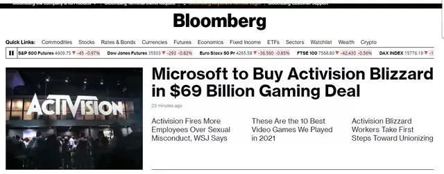- 2022-01-22 微软花天价收购动视暴雪?微软花