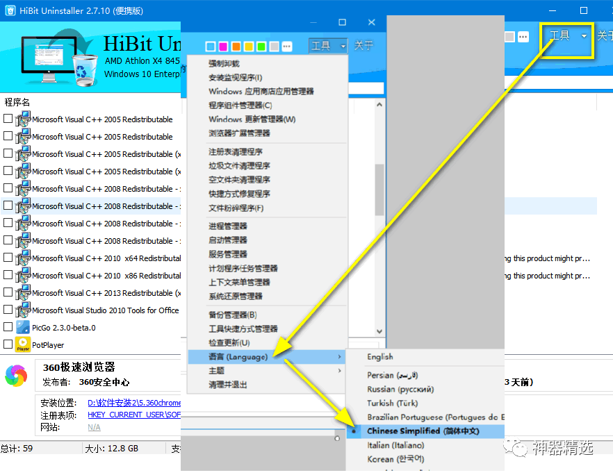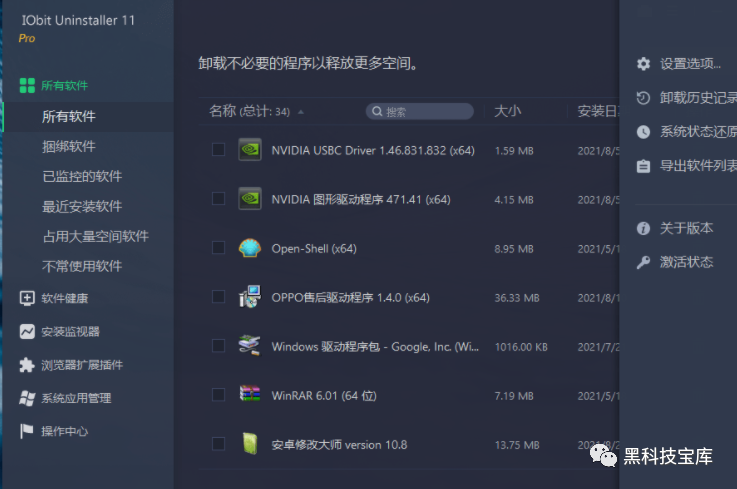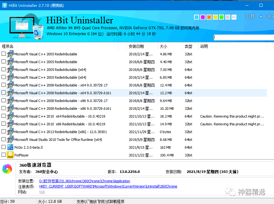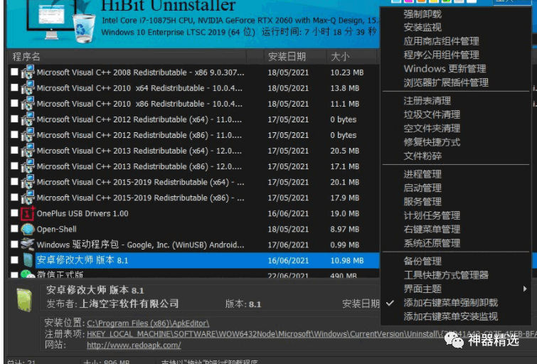 1、HiBit Uninstaller 是目前唯一一款原生单文件、便携、小体积、功能最全的软件卸载和系统优化工具!