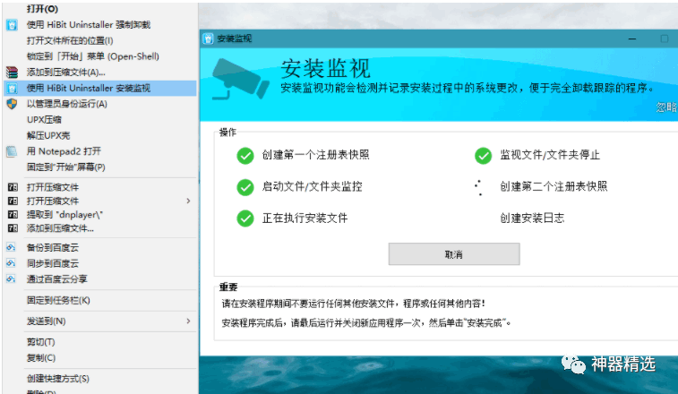 2、标配安装跟踪功能、支持拖拽任何文件卸载方式;