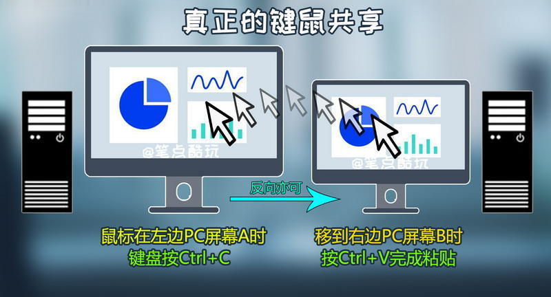 上班笔记本,回家台式机,我有两台电脑,却只想用一套键盘鼠标快捷切换,怎样实现?今天,笔点酷玩教给大家2种简单好用的方法,让你无需复杂操作,只用一套鼠标,就能玩转两台PC(Mac也行),特点是,无需多花钱买KVM切换器等设备,0成本轻松搞定,小白也能轻松学会!