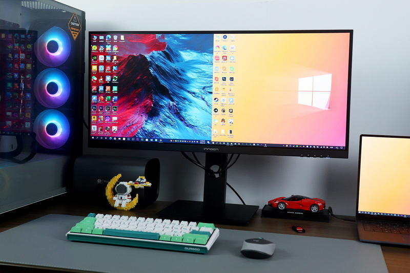 从我的视频操控来看,借助innocn 29C1F实现的“单屏双机、一套键鼠共享”的效果相当棒,鼠标、键盘在2台电脑上操控的延时也更低,而且左右屏工作状态明确,不会误操作。