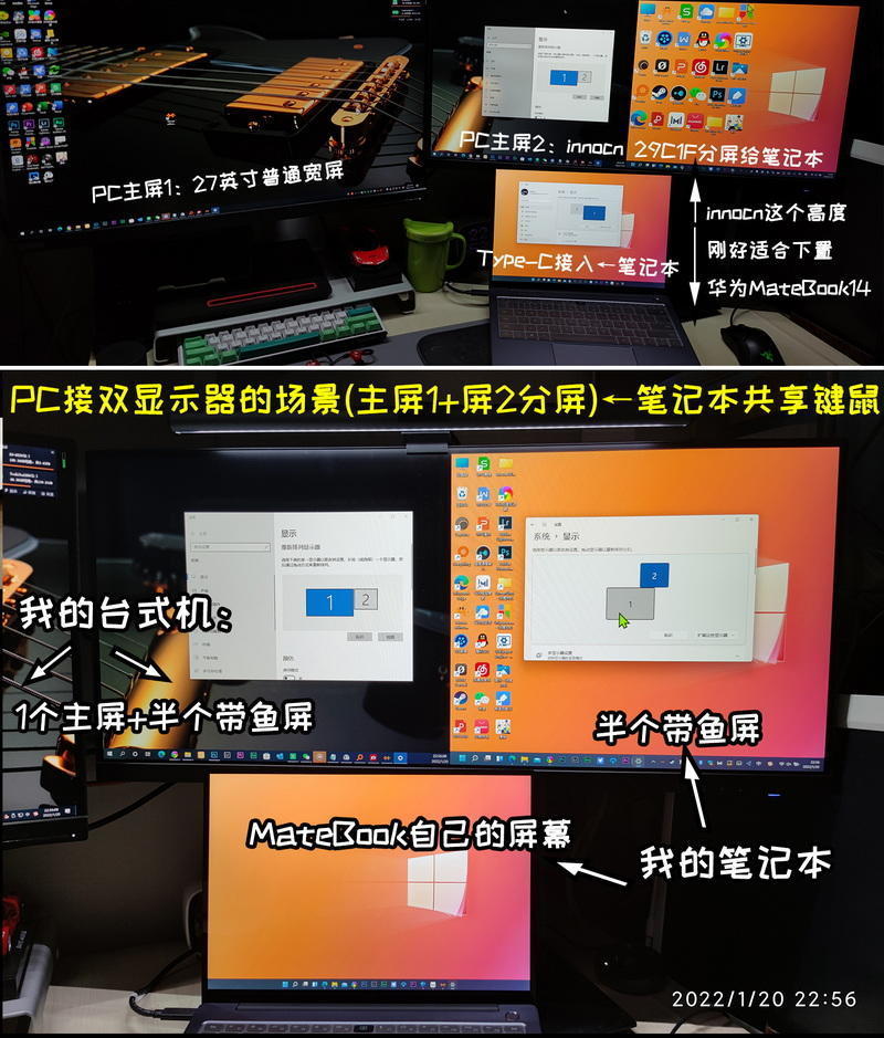 我的2台电脑双屏共享键鼠的场景之二:台式机使用29寸电竞带鱼屏(Win10系统)+ 华为笔记本(Win11系统)