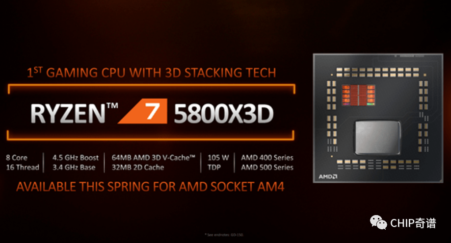 当然,竞争对手AMD方面在今年CES展会上也释放出一个彩蛋,那就是锐龙7 5800X3D,由于其使用了3D V-Cache缓存技术,增加了额外64MB缓存,官方称性能提升可达40%。