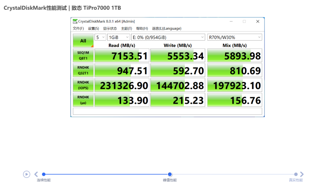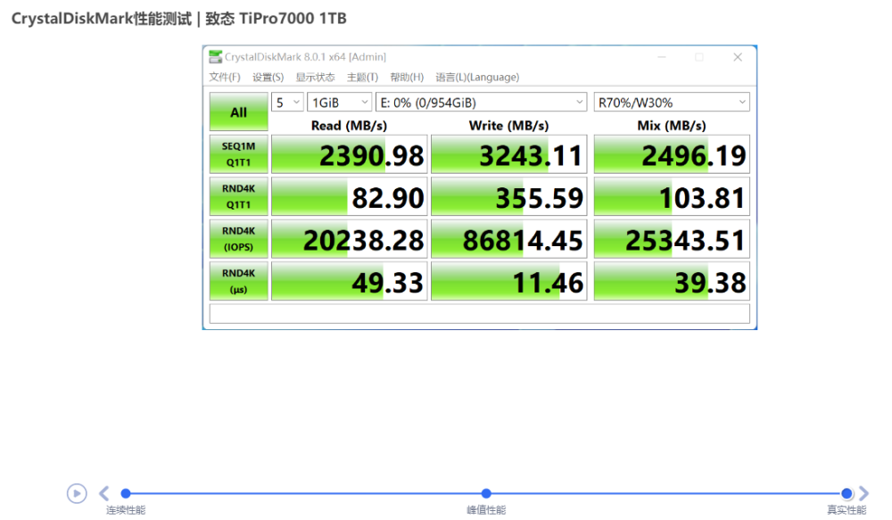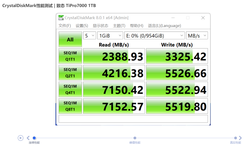 *以上性能测试成绩在低队列(QD)测得,而官方标称性能采用高队列测试,所以成绩有所差别,另外不同的测试平台也会有差别,仅供参考。