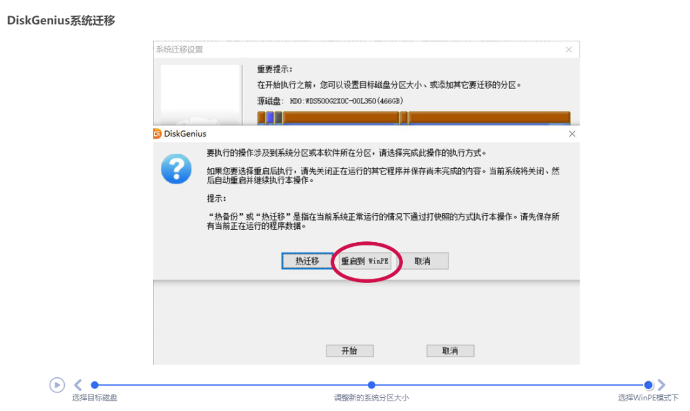 在分配好新盘的系统分区大小后,确认就会弹出一个询问哪种执行方式,这里建议采用“重启到WinPE”,电脑会重启进入到一个DOS界面,把系统盘全面复制到新的SSD上面,这一步做完后,电脑默认应该还是会引导原来的系统盘,这时候就可以先关机,在主板上面把新盘移到第一条M.2 SSD槽(或者是默认系统引导的槽位),再开机就会进到新的系统盘了,点开我的电脑看看,是不是所有东西都还在,但系统盘容量变大了!再之后你就可以把旧的系统盘清除掉,留出空间作其它用了。
