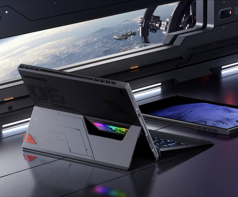 在这个颜值当道的时代,ROG 幻 X 在平板电脑品类中,有着同时采用精密 CNC 切割和阳极氧化涂层两种工艺的铝合金一体化机身,独特的复古未来主义图案,表面的抗污图层也能很好的避免沾染指纹。可看到内部结构、自带 RGB 灯珠的镂空视窗,赋予了它强烈的金属机械感和个性化。