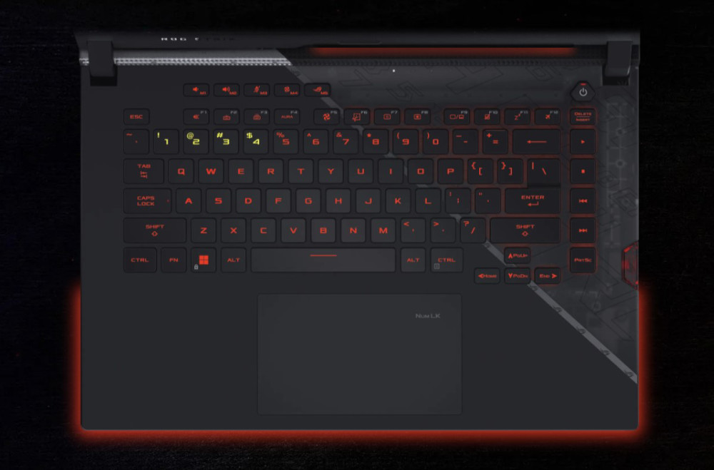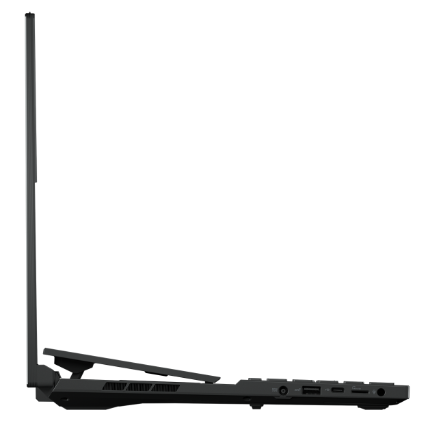 机身厚度相当纤薄,只有 14.5mm,C 面上方的散热开孔不再是个性的多边形蜂窝状,键盘也不再采用 Cherry RGB 定制,触控板面积较小,机身两侧没有散热孔,接口比较丰富,比如提供了 2 个雷电 4 的 C 口和 1 个 HDMI2.1 接口,MicroSD 卡槽也给了,支持 130W 的 C 口充电。