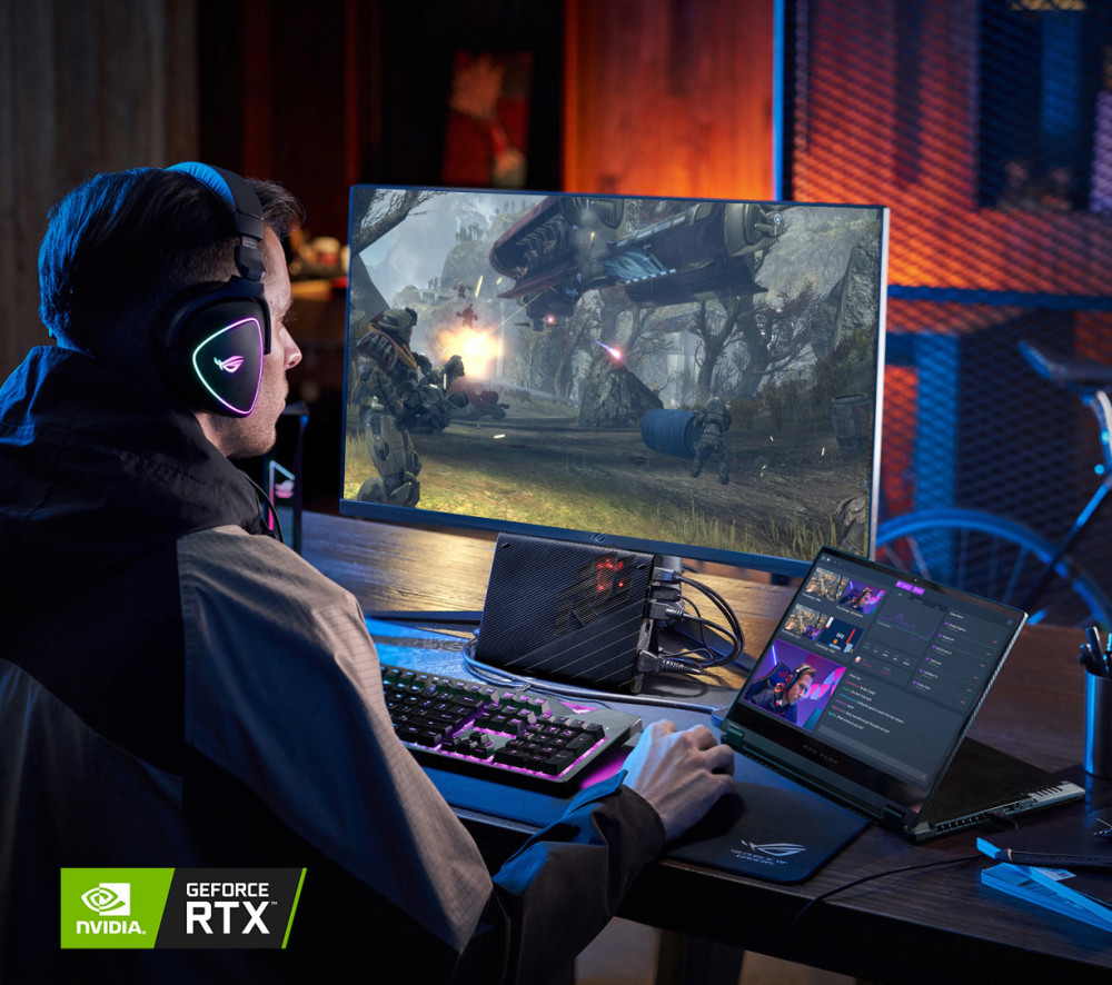 和幻 13 一样,它也可以借助侧边独家的 XG Mobile 显卡扩展坞接口,连接一块满血版 150W NVIDIA RTX3080 或者 AMD 6850M XT,并借助 PCIe 3.0 x8 通道,顶着 63Gb / s 的高速带宽,还用上了液金散热,堆料十足且完美继承了幻 13 一机多用的全能属性。
