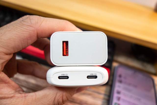 单口时的最高功率为65W,双口同时使用则会动态分配。根据充电设备协议的不同分为20W+45W、30W+30W两种情况。