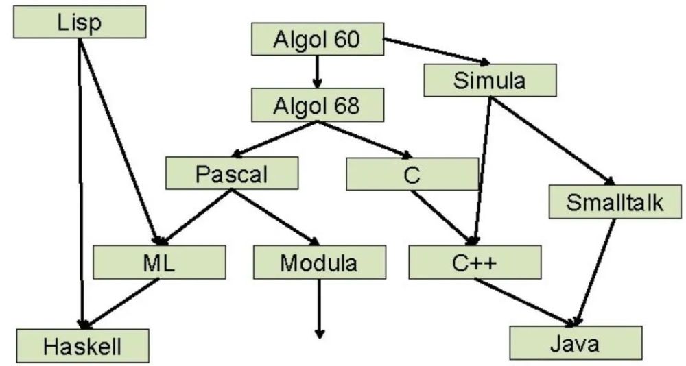 Algol 尤其是Algol 60 现在不为人知,其实非常厉害,因为它在编程语言树上,成为Basic 、Simula、Pascal、 C、 Java、C#的根。