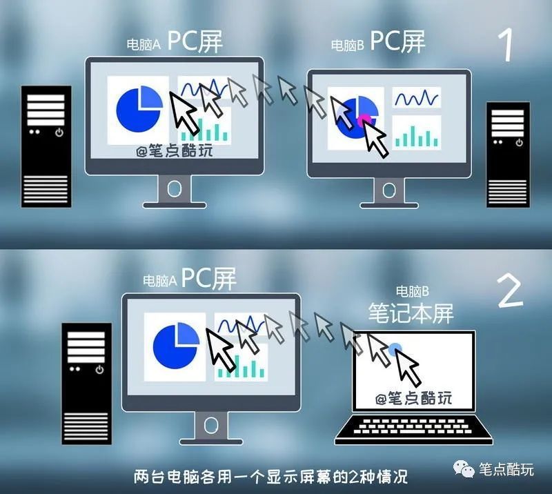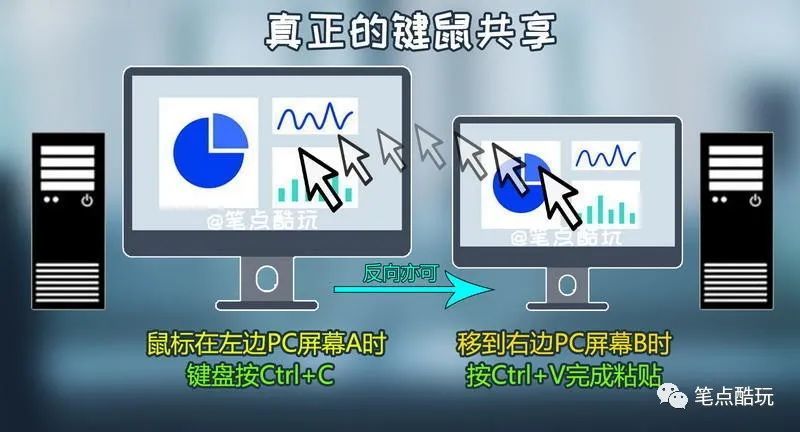 上班笔记本,回家台式机,我有两台电脑,却只想用一套键盘鼠标快捷切换,怎样实现?今天,笔点酷玩教给大家2种简单好用的方法,让你无需复杂操作,只用一套鼠标,就能玩转两台PC(Mac也行),特点是,无需多花钱买KVM切换器等设备,0成本轻松搞定,小白也能轻松学会!