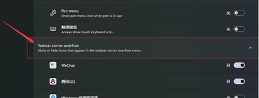 2、接着找到任务栏设置中的“taskbar corner overflow”。(任务栏角图标)