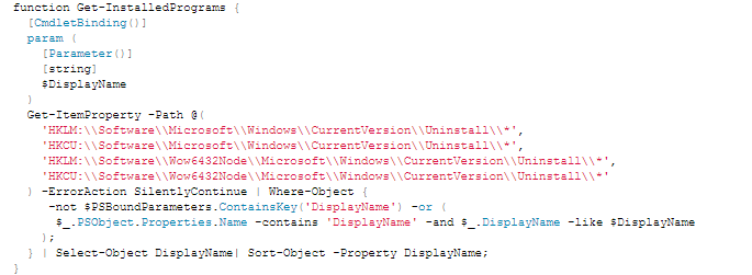 这个模块使用两种方法来获取已安装的应用程序。首先是枚举卸载注册表值: