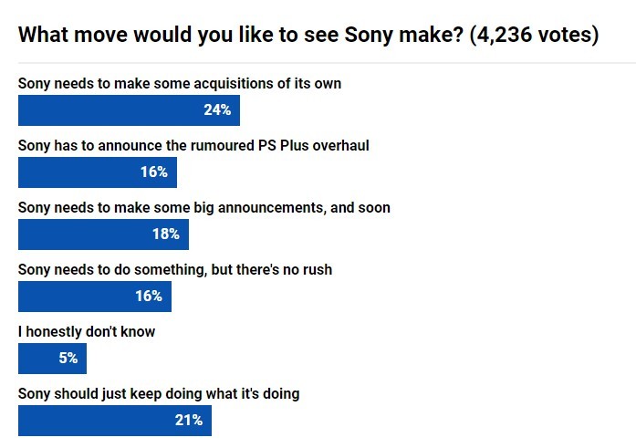 外媒投票:索尼该如何应对微软收购动视暴雪?很多人想让索尼也来些收购