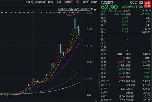 而此前九安医疗自11月15日从6.8元启动上涨行情至1月18日创出的历史最高价88.88元,2个月累涨12倍,稳居今年以来A股市场股票涨幅榜首。