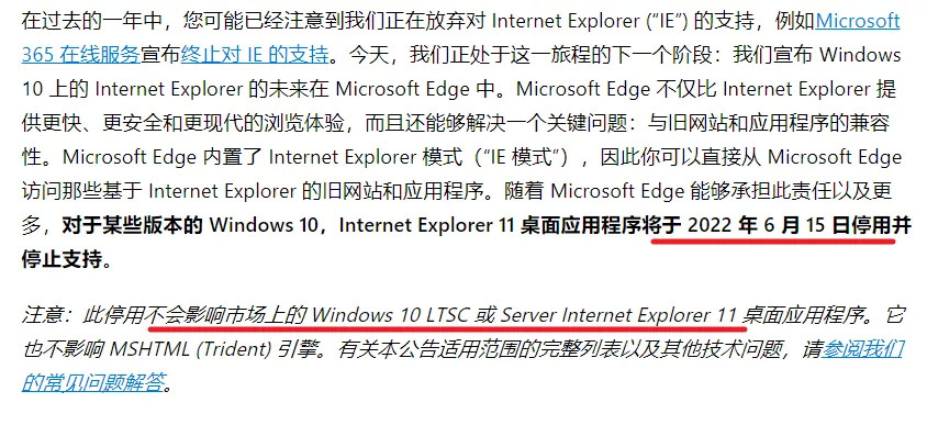 微软也宣布 IE 浏览器将于2022年6月15日退休。