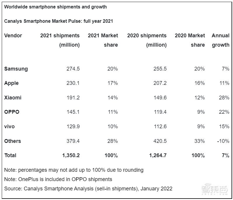 ▲2021年全球智能手机出货量,来源:Canalys