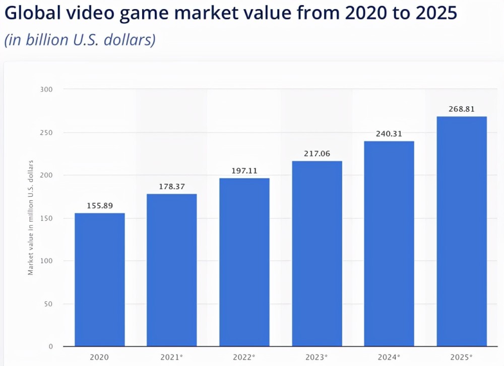 2020-2025年全球视频游戏市场价值(来源:statista.com)