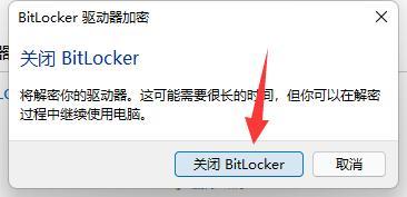 第五:最后在弹出窗口再点击“关闭bitlocker”即可解决。