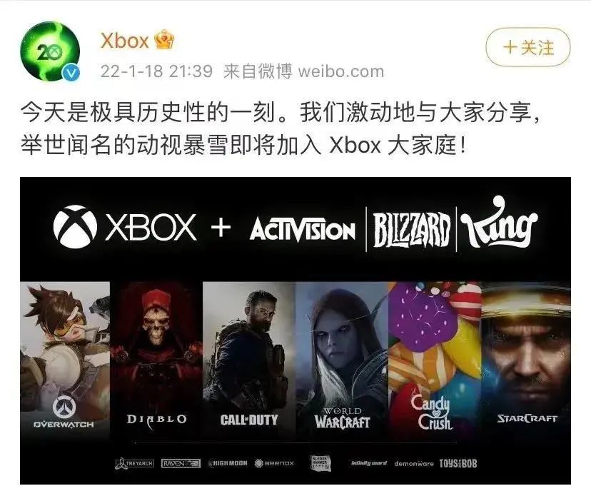 2022年1月18日,游戏史上最大的收购,动视暴雪被微软687亿美元收购(wuhu专题:游戏史上最大收购!动视暴雪被微软687亿美元收购了???这是要加码元宇宙?!),交易完成后,微软将成为世界上营收第三高的游戏公司,仅次于腾讯和索尼。