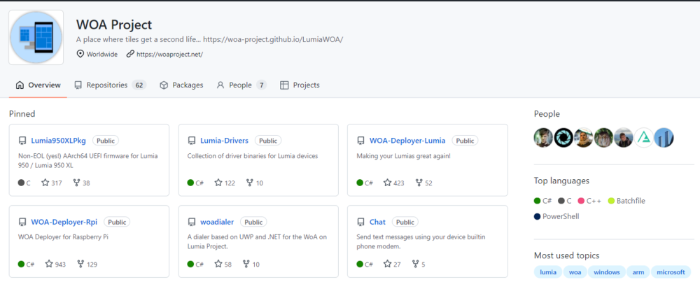 从 2019 年开始,第三方开发者集合的 Lumia 手机刷 Windows 10 ARM(WOA)项目也已经在 GitHub 上线,包含了所有有关 LumiaWOA 的项目。