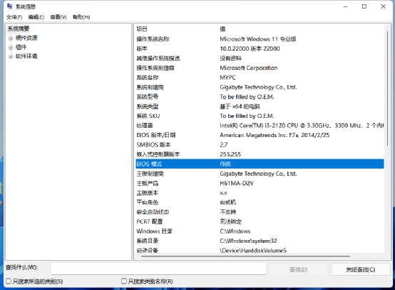 查看安装电脑的启动方式:因为BIOS和UEFI启动的电脑分别使用不同的批处理,所以在自动重装前需要确定电脑启动方式。先按正常的流程进入电脑,进入桌面后点击“开始/运行”,输入“msinfo32.exe”,启动系统信息程序后,在右侧窗格定位到“BIOS模式”,如果这里显示的是“传统”,表示使用的是BIOS模式启动,UEFI启动则显示为“UEFI”。