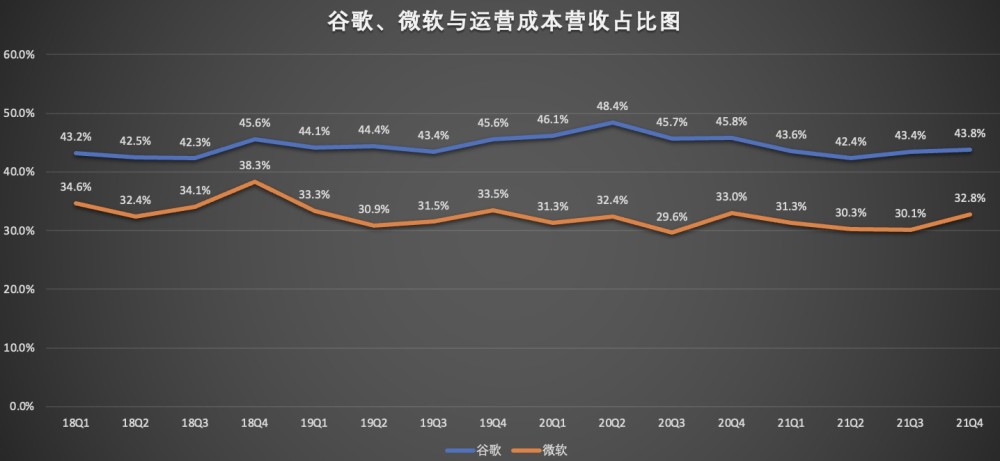 从二者自身的成本控制来看,相对保持稳定。Alphabet的成本方面,流量成本有所增加,但总体可控。