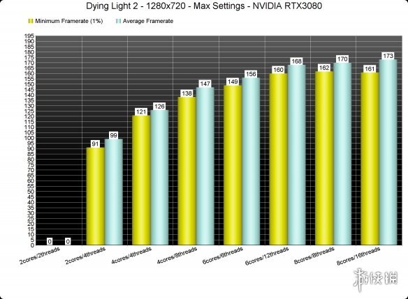 为测试游戏在多种CPU环境下的表现,我们分别模拟了双核、四核与六核CPU。出人意料的是,本作并不需要高端CPU的支持。虽然我们的模拟双核环境在不开超线程的情况下无法启动游戏,但仍然可以在720p/满画质无光追设置下跑到90fps。同时,我们也注意到存在偶发卡顿现象,但整体来说,是完全能玩的。